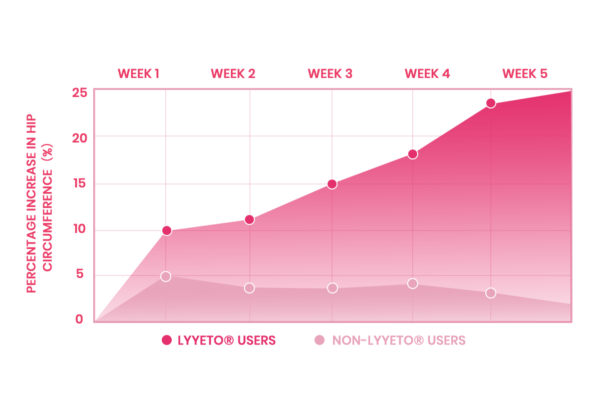 *These findings highlight the efficacy of Lyyeto® CurvyBoost Hip Enhancement Gummies as the leading solution for increased hip size, perfectly contoured hips, reduced cellulite, and more elastic skin.*