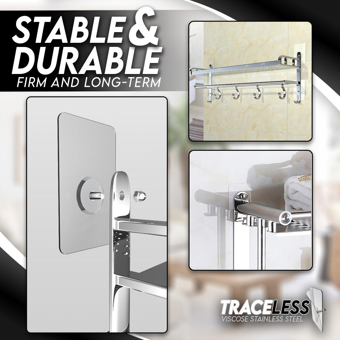 Drill-free Adhesive Hanging Nails mount heavy duty décor, shelfs, kitchen rack, requiring no wall drilling or screws and leaving no trace on wall.