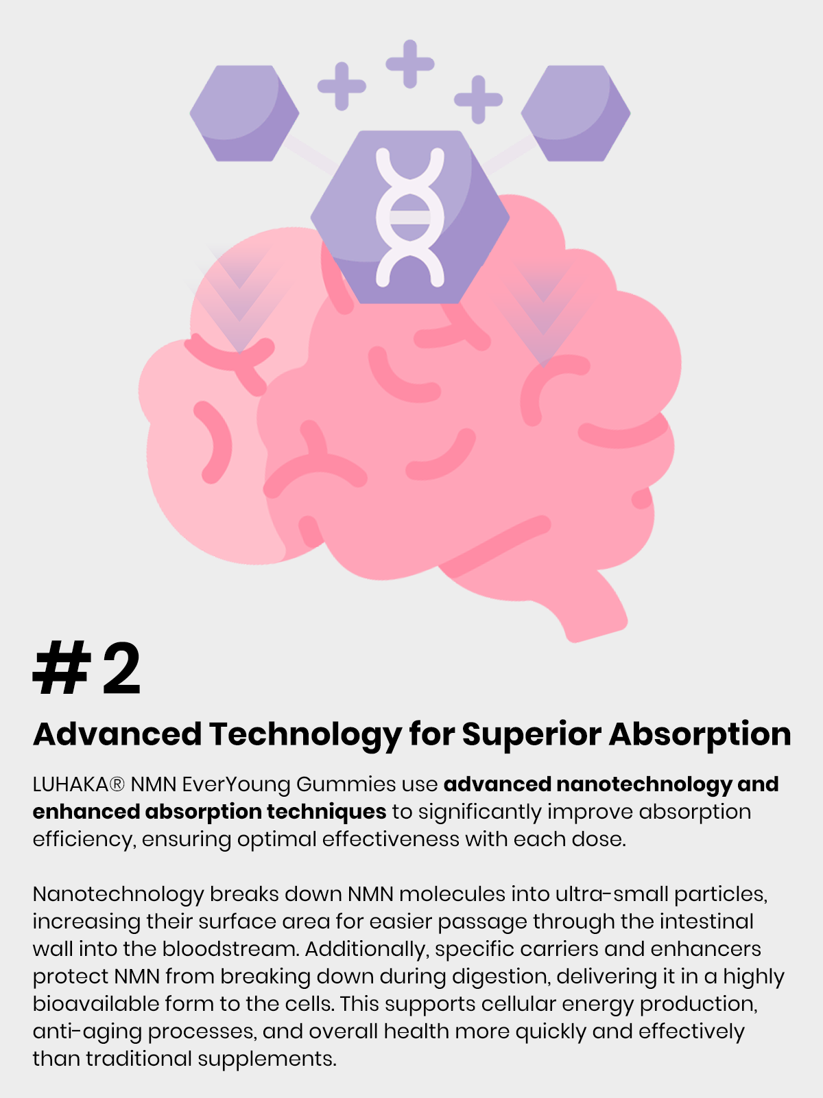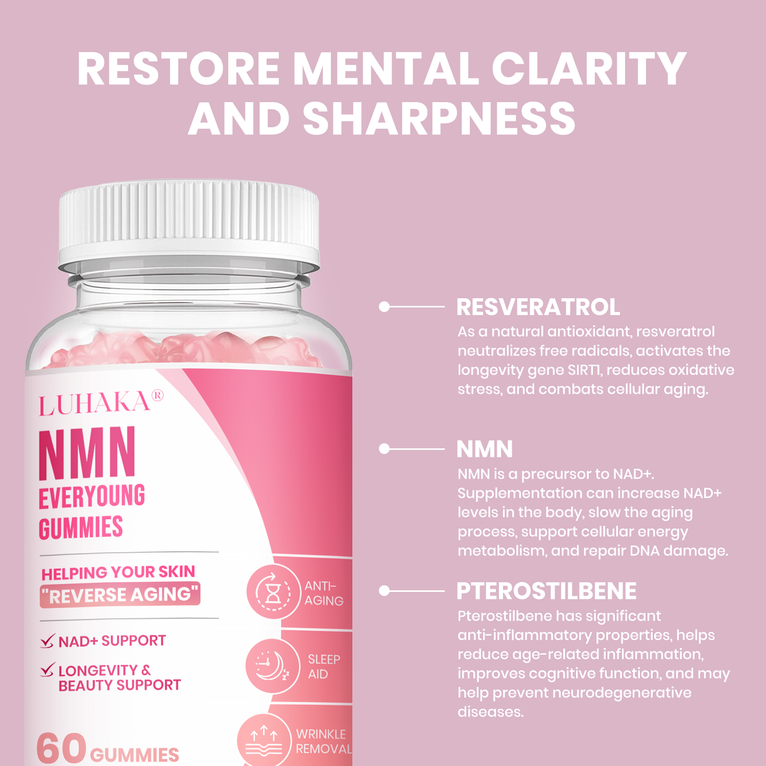 LUHAKA® NMN EverYoung Gummies represent a breakthrough in NMN supplements. In the short term, they enhance focus and concentration, helping you stay mentally sharp and handle tasks with greater efficiency.
