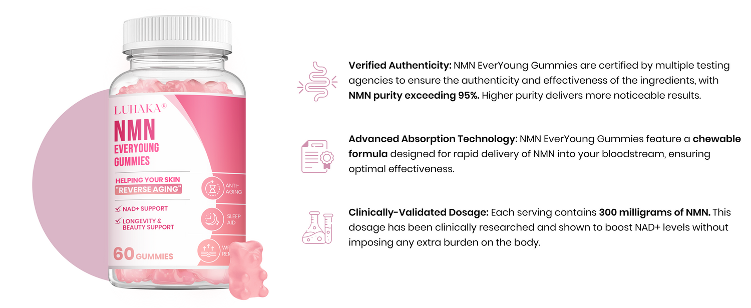LUHAKA® NMN EverYoung Gummies is here to ease any worries, aiming to help every customer live a better, more youthful life.